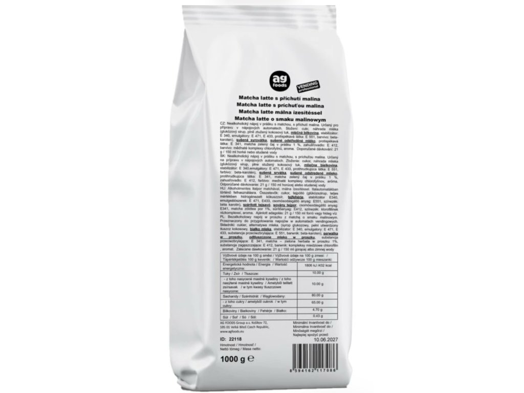 AG PRO Matcha latte s príchuťou malina – nealkoholický nápoj v prášku s matchou, s príchuťou maliny.