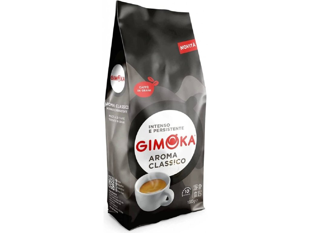 Gimoka Aroma Classico - káva s plnou chuťou pražená pre špeciálne príležitosti. Vrcholná zmes značky primárne určená do gastronómie. Vyšší podiel praženej kávy Arabica zámerne vytvára horko sladkú kávovú chuť s hustou cremou na povrchu nápoja.