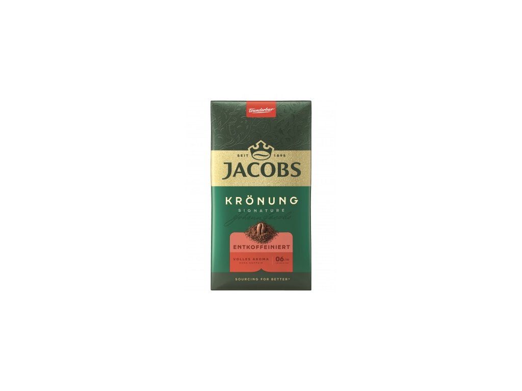 Jacobs Krönung Entkoffeiniert je kultová mletá káva značky Jacobs, pripravená špeciálnou metódou odstraňovania kofeínu pri zachovaní plnej chuti a vône.