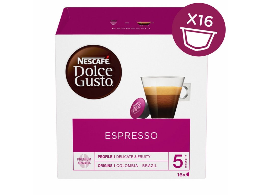 Kávové kapsule NESCAFÉ® Dolce Gusto® Espresso vám ponúknu prvotriednu kvalitu, s jednoduchosťou prípravy. Stačí vložiť kapsulu do kávovaru, stlačiť tlačidlo a v zápätí máte dokonalú kávu, s hustou penou, jemnou arómou a zamatovou chuťou. NESCAFÉ® Dolce Gusto® Espresso je ideálne do malej 50 ml šálky, v ktorej si vychutnáte dve odrody zŕn 100% arabiky, s intenzitou 5/11. Nechajte sa zviesť chuťou po granátovom jablku s dozvukom vlašských orechov. Balenie obsahuje 16 ks hermeticky uzavretých kapsúl, na prípravu 16 šálok espresso kávy.
