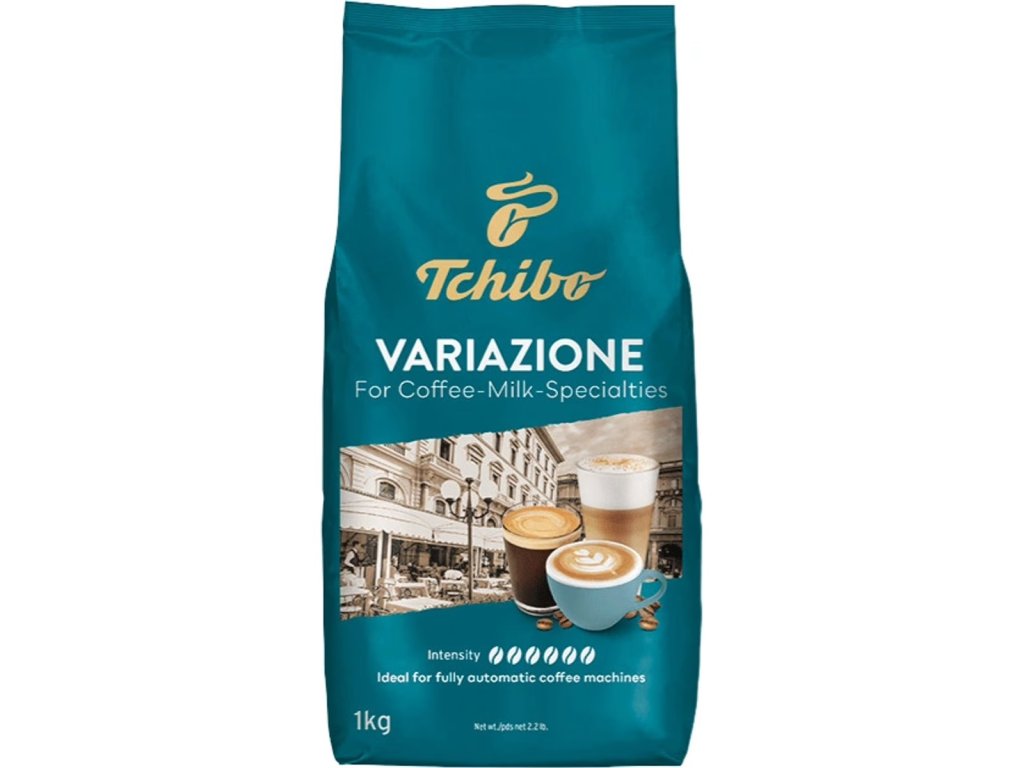 Tchibo Variazione je tmavá pražená káva bez kyslosti, ktorá je ideálna na prípravu mliečnych nápojov a odporúča sa pre automatické kávovary. Má plnú a intenzívnu chuť. Káva je zmesou zŕn Robusta a Arabica a dodáva sa v 1 kg balení so stupňom intenzity 6 zo 6.
