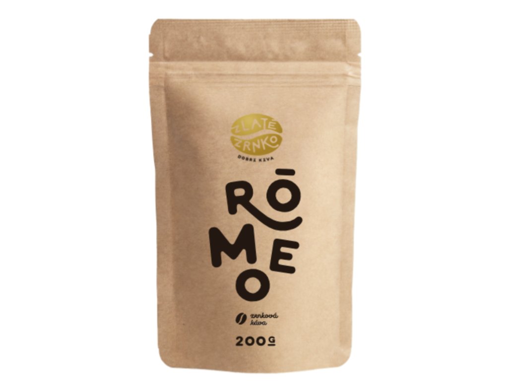 Pôvod: Káva Rómeo je zmes 6 až 7 káv s pôvodom, 85% arabika a 15% robusta. Pôvod hlavnej zložky: Brazília. Každá zmes Zlaté Zrnko je výsledným súzvukom chutí káv z ktorých je zložená a je namiešaná podľa chutí ľudí. Zmesi Zlaté Zrnko miešajú talianski odborníci v laboratóriách priamo v prístave. Miešajú sa z rôznych zdrojov tak, aby každý mesiac, každý rok mali rovnakú výslednú chuť.